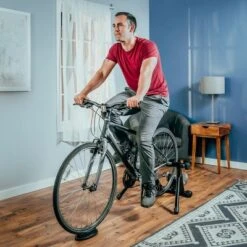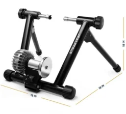The Alpcour Indoor Bike Trainer Stand is a fantastic choice for those seeking all-season training, conditioning, fitness, and exercise at home. This fluid bike stand can effortlessly convert any mountain or road bike into a stable, smooth-riding indoor stationary bicycle, making it an essential tool for dedicated cyclists.Its near-silent fluid technology incorporates a high-quality flywheel mechanism that creates drag against the back tire, providing an authentic cycling experience. This noise reduction technology eliminates the distracting whirring sound, and its friction-lowering feature extends the life of your bike.The powerful progressive resistance offered by the Alpcour Indoor Bike Trainer Stand is truly impressive. The impeller spins within the wheel’s liquid and heats up to increase resistance as you pedal faster, offering limitless possibilities! You can simulate roads, hills, and intervals with life-like accuracy, with no adjustment needed.Constructed from durable, heavy-duty stainless steel, this stand guarantees safe, steady performance. It includes a front wheel riser block and anti-slip rubber pads to prevent movement. It also features a dual tension knob and lock ring for superior security.Despite its robust construction, the stand is lightweight and compact, offering a foldable frame for easy travel. It comes with a sturdy bag for effortless carrying and storage. The stand is compatible with most 26-29 inch and 700c wheels, making it a versatile choice for most cyclists.