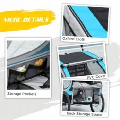 Featuring a 3-in-1 design, this bike cart can ensure you get the most use out of your outdoor activity, whether it’s walking, jogging, or riding. Aosom’s storage-equipped stroller will accompany you if you want to continue on foot after biking. This versatile, ultra-safe, water-resistant, and terrain-ready piece of weekend entertainment will let you pull/push multiple kids, cut across the grass, and pack it away when you’re all done and finished.