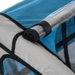 Expose your child to the fun of the outdoors with the Aosom Child Bike Trailer. Constructed from a steel frame that can support 2 children. Are far as security goes, the bicycle trailer for kids has a sling seat with a 5-point security harness to keep your children secure. The hand-lock brake system allows you to lock the trailer while it’s parked. Folding this trailer up for storage is easy with no tools required.