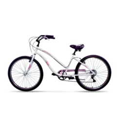 The Apollo Beach Commander is a fun and practical cruiser bike for any path or boardwalk. The single speed drivetrain requires little maintenance and the EDI spokes prevent rust. Extra features include 4 bolt aluminum stem, quick-release seat post, and comfortable platform pedals. Available in both 24 and 26 inch wheel sizes and both step-thru and standard frame designs. A variety of colors lets you choose the bike that fits your style.