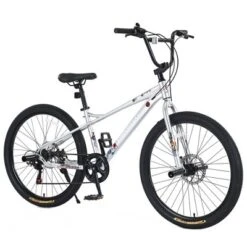 This 26-inch freestyle kids bike is perfect for boys and girls aged 12+, featuring a Shimano 7-speed gear system for smooth shifting on various terrains. The durable carton steel frame with lightweight aluminum rims and Wanda 26×2.35 wide tires ensures stability and comfort for neighborhood rides or light trails. Front and rear disc brakes provide superior stopping power for safety, while the 85% pre-assembled design comes with free tools and pedals for quick setup. An ideal youth bicycle that combines performance, safety, and easy assembly for growing riders!
