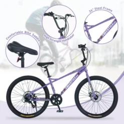- Durable Yet Lightweight Build:Features a strong carton steel frame with lightweight aluminum rims and Wanda 26×2.35 wide tires for superior traction and a comfortable, stable ride on various surfaces.