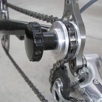 TOOL CHAIN HOLDER BIKE MED ALY Solid CNC machined aluminum. Keeps the chain off the frame for cleaning. Fast, simple mounting to any bike. Not affected by cleaning chemicals or lubrication products. Made in the USA. Excellent for holding chain in place while in travel case with rear wheel removed.