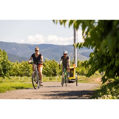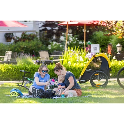 The Burley Bee®, our original bike trailer, is a long-standing family favorite for biking with children. With UV-protected windows, front and rear reflectors, and a 5-point harness system, the Bee takes both safety and comfort seriously.