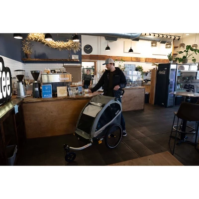 - 2-in-1 bike trailer and stroller with included 1-Wheel Stroller Kit