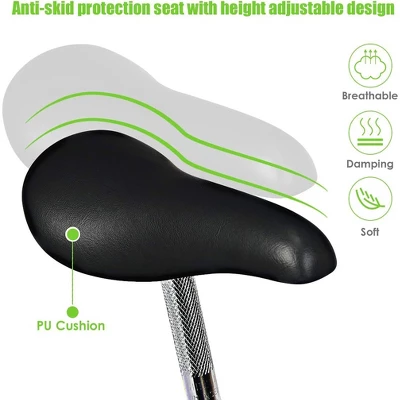 Non-slip touch hand grips and cushioned saddle seat for a comfortable ride
