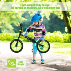 - STYLISH APPEARANCE: Streamlined design and stylish body appearance make this balanced bicycle a fashionable product. Classic black and green/yellow collocation, make the bike simple but fashionable.In addition, the handlebars at both ends have lovely tassel ribbons, adding to the fun of riding.
