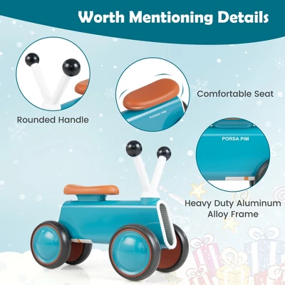 Our baby balance bike will train kids from standing to walking. And your baby can promote their coordination and balance ability during the riding process. 135-degree limited steering and 4 stable wheels guarantee safe and steady riding. Besides,it’s designed with non-slip handlebars,no pedal and full-closed tires. To ensure more comfort,the seat has 3 layers: harmless PU cover,high-density EVA and breathable layer. The seat can bear a weight up to 55 lbs. Moreover,high-quality PP and aluminum alloy materials make it strong and durable. Light weight makes it easy to carry and transport. Also,it’s easy to assemble and maintain.