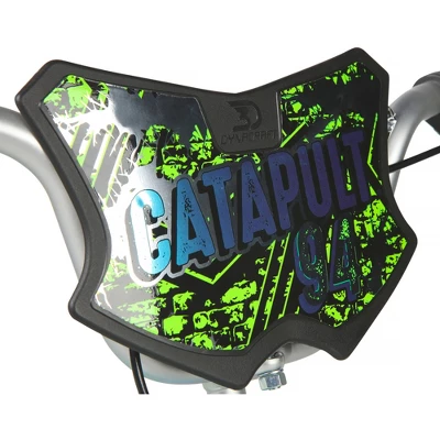 Soar into action with the Everest Catapult 16” Bike. This BMX-style bike is decked out with a sturdy, steel frame and a vibrant, deluxe paint finish. The adjustable seat and the removable, adjustable training wheels make this the perfect bike for little ones of different sizes and skill-levels. Front hand brakes and rear coaster brakes gives them optimal control and makes stopping quick, easy, and safe. Adventure in style with the rad Everest Catapult 16” Bike.