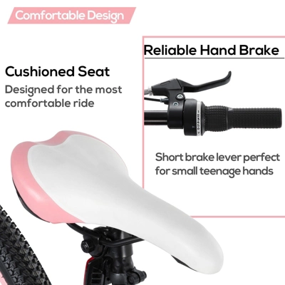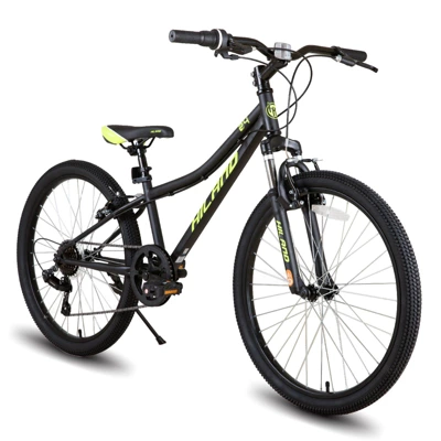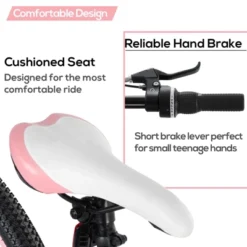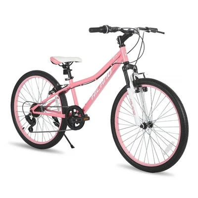 This 24 Inch Kids Bike, designed specifically for kids, the perfect blend of durability, performance, and style, making it an ideal choice for young adventurers. With a high-carbon steel frame and front suspension fork, your child will enjoy a comfortable and smooth ride, even on rough terrain. The 7-speed drivetrain with grip shifter allows for easy gear changes, ensuring they can tackle various landscapes with ease. The reliable V-brakes provide excellent stopping power, and the durable tires are puncture-resistant, ensuring a safe and enjoyable riding experience. Suitable for beginners, this bike is perfect for transitioning from a small kid’s bike to a bigger one. With 85% pre-assembly and included tools, setting up this bike is a breeze. Get ready to hit the trails with the Hiland Mountain Bike!