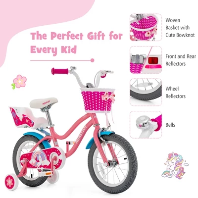 This children’s bike comes with a special doll seat, which allows your kids to bring along their teddy bears and dolls. The detachable training wheels help kids to learn to stay balanced for the teen’ s bike while a low-profile carbon steel structure makes it easy for younger riders to get on. This kids’ bike is future-proofed with height adjustable handle bars and PU saddle for kids aged 3 to 5 years old or 3.28 to 3.97FT tall/5 to 9 years old or 4.59 to 4.27FT tall. The 18/14-inch puncture-proof rubber tire is shock absorption, more stable in cement road brick road, boardwalk, grassland. This kids’ bike can be stopped by the coaster brake (pedal backwards to stop) and the caliper brake that stops by hand. It is a perfect gift for every kid.