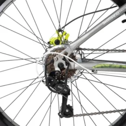 Dual disc brakes deliver great control over wet and dry conditions. This 26-inch mountain bike provides wider tires for solid traction. The padded saddle features an alloy quick-release seat binder to make it easy to adjust the seat height for the right fit. This bike takes you anywhere, through trails or around town!
