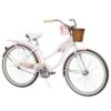 The rear coaster brake is simple and fun – just pedal back to stop; limited lifetime frame warranty. The comfortable design, the storage with the rear rack and front basket, and the sophisticated classic styling all make this Nassau bike the right choice for cruising. Huffy, We Make Fun.
