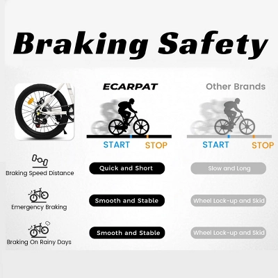 - Reliable All-Weather Dual Disc Brakes: Equipped with front and rear mechanical disc brakes, providing quick and dependable stopping power in all weather conditions, including rain and mud.