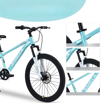 This bike is specifically designed for kids aged 9-12 years or those with a height of 56-66 inches, ensuring a comfortable fit for young riders. It features a height-adjustable saddle and handlebar, catering to the growth needs of children at various stages. The inflatable tires enhance comfort and traction, making it easier for kids to navigate different terrains. Additionally, the suspension fork provides excellent impact resistance for a smoother ride over rocky and bumpy surfaces.