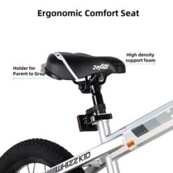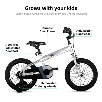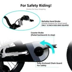 The Kid Bike is a perfect choice for young adventurers, featuring a lightweight frame, forward-positioned cranks, and pedals designed for early riders. Its narrow pedal positions, smaller grips, and compact seat ensure a comfortable and controlled riding experience. Built to last with a sturdy Hi-Ten steel frame and fork, this bike handles rocky and bumpy terrain with ease. The coaster brake and handbrake combination offers dual stopping power, while rubber off-road tires provide excellent traction and stability in any weather condition. The full chain guard adds an extra layer of protection. As your child grows, the removable training wheels, adjustable saddle, and handlebar allow for seamless progression to new challenges.