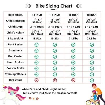 JOYSTAR Unicorn Kids Bike: A Magical Ride for Little Princesses Unleash the Magic of Riding – Introduce your little one to the enchanting cycling world with this Kids Bike. Designed for children aged 3 to 9 years, this bike is not just a mode of transportation; it’s a gateway to adventure, independence, and joy. Dazzling Design & Color – With its vibrant colors and charming unicorn theme, this bike is sure to capture your child’s imagination. The eye-catching hues and whimsical design will make your child the center of attention at the playground. Quality Construction – Crafted with a sturdy yet lightweight frame, the JOYSTAR bike ensures a smooth and safe ride. The bike’s construction is praised by customers for its durability, making it a reliable choice for parents who want the best for their children.Â