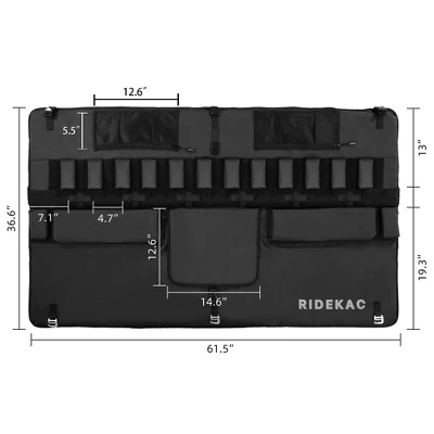 Looking for an easy way to load up bikes and hit the trails? Look no more with this KAC Bike Tailgate Pad for Trucks with 2 Storage Pockets for Tools and Gears.The padded tailgate cover for mid-size and compact trucks carries up to 5 bikes for ultimate convenience. Made from heavy-duty PVC with weatherproof coating, the tail gate pad also has a soft velvet upholstery underneath that protects your pickup trucks and your bikes. Featuring a middle flap that buckles for an easy tailgate handle and rearview camera access, this pad is truly unique for your every road adventure. Maintenance is made possible with the 2 mesh multi-purpose tool pockets that provide efficient storage and allow moisture to drain for rust prevention.Ideal for transporting mountain bikes, gravel bikes, road bikes, and others, this padded tailgate mat will be your best traveling companion. Expect lesser worries on the road with this KAC Bike Tailgate Pad for Trucks with 2 Storage Pockets for Tools and Gears.