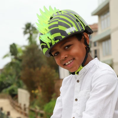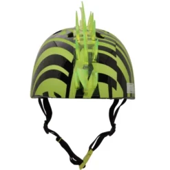 The Krash! Dazzle Green Mohawk youth size helmet has 5 LED lights that illuminate the green fin mohawk! The lights power on and off with a button located at the back of the helmet, and the lights can be set in steady or flash mode! The youth size helmet is recommended for riders 8–14 years old, but will fit anyone with a head measuring 54–58 cm.