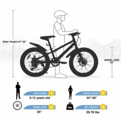 This 20-inch fat tire mountain bike is specially designed for boys and girls aged 5 and up who love outdoor adventures.