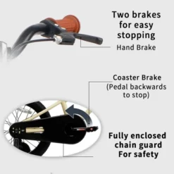 - REAR COASTER BRAKES: Rear coaster brakes make it easy to learn, simply push the pedals backward to stop; Enclosed chain guard prevents your little one from touching the chain and getting hurt