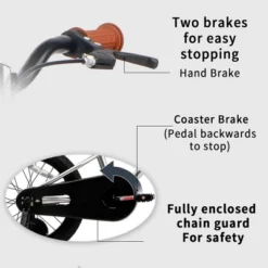 - REAR COASTER BRAKES: Rear coaster brakes make it easy to learn, simply push the pedals backward to stop; Enclosed chain guard prevents your little one from touching the chain and getting hurt