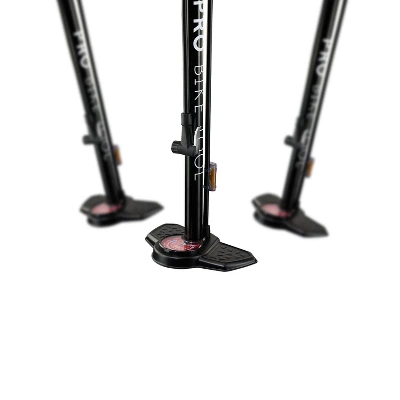Introducing the PRO BIKE TOOL Track-style bike pump with gauge. Made from superior quality CNC machined aluminum alloy with durable and precise parts. Features extra long hose of 1100mm and oversized piston for super fast inflation up to 160 psi/11 BAR. The ergonomic wooden T-handle provides great grip and pushing power. Secure clamp-on valve connection for tight air seal with no leaks. Includes ball needle, balloon valve, and Dunlop Valve Adapter.