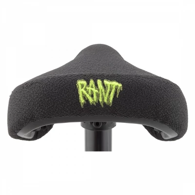 SADDLE RANT MX SLIME COMBO 25.4 BK The Slime Combo Seat features a slim nylon base covered in high density mid foam and kevlar / textured vegan leather 3 panel cover. The base is hydraulically pressed with industrial epoxy and hardened rivet for that little extra. Hidden plastic bumpers under the nose and tail for improved durability. Black saddle with the Rant Slime logo on the back. Integrated alloy 25.4mm x 160mm post.