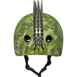 Finally a helmet that kids WANT to wear! This 3D Raskullz Digital Camo Mohawk helmet inspires imagination and encourages kids to be active outdoors. The bicycle helmet features an eye-catching 2” tall bendable green mohawk with white tips, and a totally rad digital camouflage graphic! The vented aerodynamic styling allows for great airflow and keeps your melon cool when riding. Recommended for ages 5–8 years old, but will fit most with heads measuring 50–54 cm. Head sizes and shapes can vary, even within an age range. Always take a head measurement.