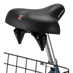- Comfortable, padded spring cruiser saddle absorbs bumps.