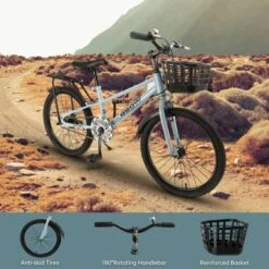 Get your child ready to ride with the Topteng 20-Inch Kids’ Bicycle — the perfect blend of safety, comfort, and fun. Featuring a durable high-carbon steel frame with a thickened design for extra stability, this bike is built to handle every adventure. The lift-style adjustable seat easily customizes to your child’s height, ensuring a comfortable and supportive ride as they grow.Equipped with sensitive dual brakes – a front caliper brake and a rear coaster brake – this bike provides reliable stopping power for added safety. The 180° rotatable handlebar adds extra fun and flexibility, allowing kids to steer freely and enjoy the ride from every angle. Wide, anti-slip rubber tires with deep tread patterns provide excellent grip and shock absorption on various surfaces, making rides smoother and more stable.A reinforced front basket adds convenience for carrying toys or snacks, while the stylish hollow chain guard protects clothing and enhances the bike’s sleek look. Perfect for everyday rides, outdoor adventures, or weekend fun, the Topteng 20-Inch Kids’ Bike is designed to inspire confidence and joy in every ride.