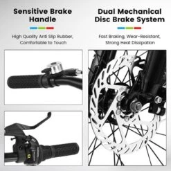 - 【Wide Tires for Better Traction and Comfort】 Mechanical disc brake system with 160mm rotors front and rear ensures safety. Both front and rear provide great stopping power, greatly reduce the braking distance and ensure that you can stop immediately in case of emergency.