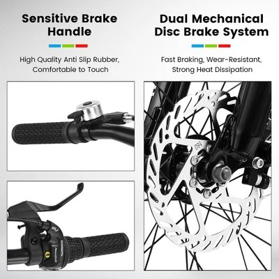 - 【Durable High Carbon Steel Frame for Long-Lasting Use】Built with a high carbon steel frame, this mountain bike is strong and durable, designed to withstand rough terrains and daily rides, making it perfect for kids and teens.