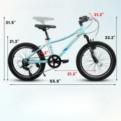 DSVIMOY 24 Inch Kids Mountain Bike For Boys & Girls Ages 7-12, 7-Speed Gears, Silver, 62.4″*25″*39″